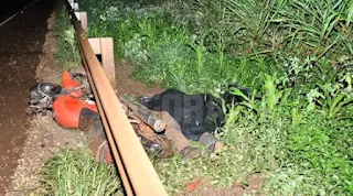 O casal estava em uma moto Titan 125 vermelha. Com a força do impacto as duas vítimas foram arremessadas e bateram na grade de proteção metálica que fica nas margens da pista.